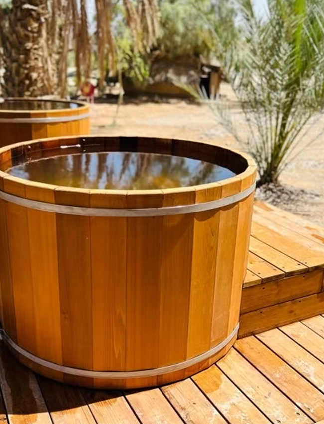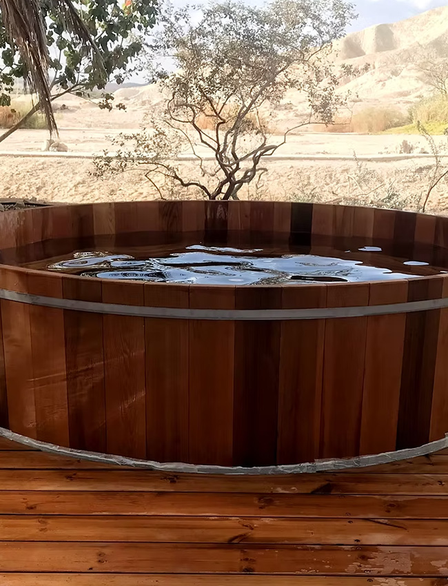 בניגוד לאמבטיות אקרילאיות או מפלסטיק, הוט טאב מעץ מביא איתו חמימות אסתטית ואמיתית כאחד. העץ הוא חומר טבעי שמתאים לסביבת הגינה, מתמזג עם הנוף ומעניק תחושת יוקרה כפרית ואותנטית. עם הטיפול הנכון – הוא מחזיק שנים ארוכות.