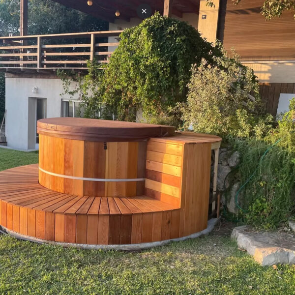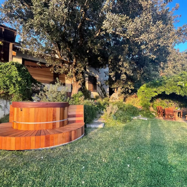 בניגוד לאמבטיות אקרילאיות או מפלסטיק, הוט טאב מעץ מביא איתו חמימות אסתטית ואמיתית כאחד. העץ הוא חומר טבעי שמתאים לסביבת הגינה, מתמזג עם הנוף ומעניק תחושת יוקרה כפרית ואותנטית. עם הטיפול הנכון – הוא מחזיק שנים ארוכות.
